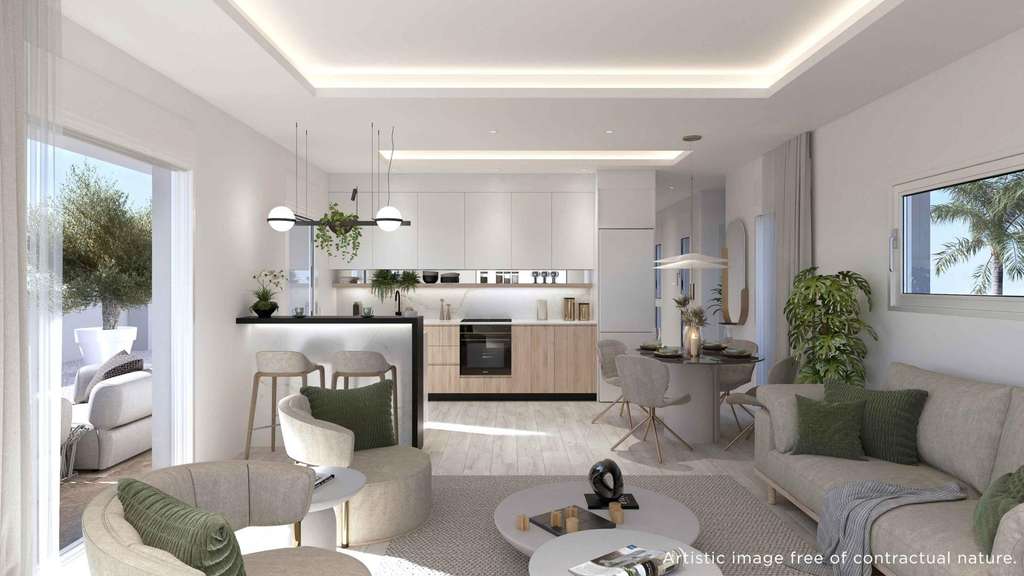 Elija entre apartamentos de 2 o 3 dormitorios, todos con 2 baños (uno en suite) y amplias zonas exteriores. Las viviendas de la planta baja cuentan con jardines privados, las de las plantas intermedias ofrecen amplias terrazas y los áticos de la planta superior incluyen soláriums privados, perfectos para disfrutar del sol, comer al aire libre o simplemente relajarse en su propio refugio de paz.