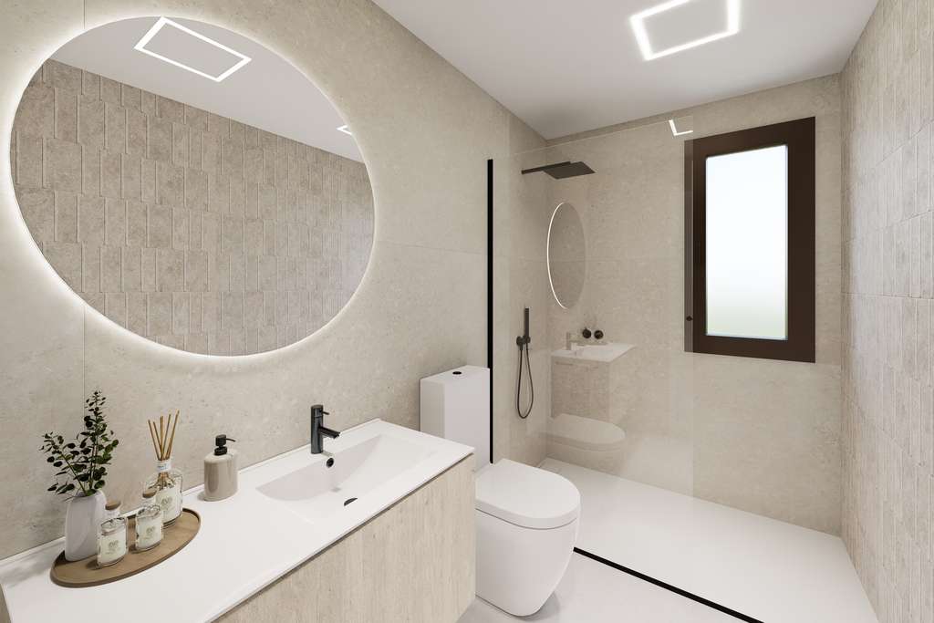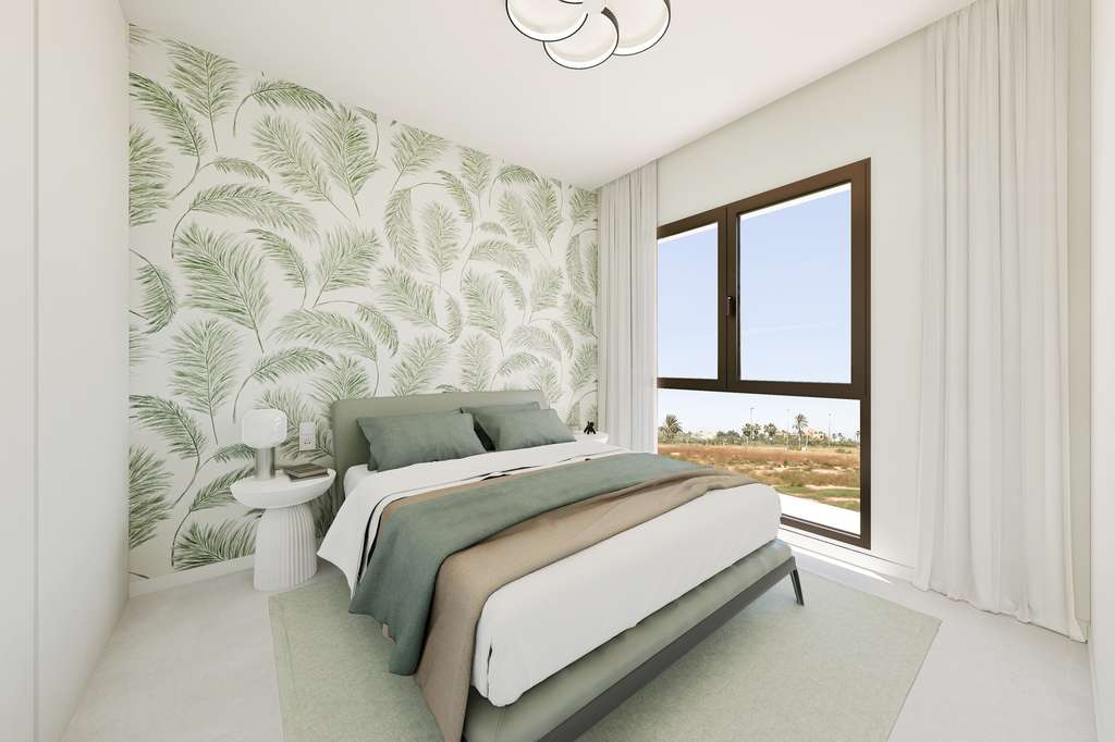 Los exteriores de estos bungalows están pensados para maximizar el disfrute del clima mediterráneo. Cada propiedad cuenta con un jardín privado, perfecto para crear un espacio verde personal o para disfrutar de momentos al aire libre. Además, las terrazas ofrecen un lugar ideal para relajarse, tomar el sol o compartir comidas al aire libre con familiares y amigos. La inclusión de un solárium proporciona un espacio adicional para disfrutar de vistas panorámicas y del sol durante todo el año. Estos elementos exteriores están diseñados para complementar el estilo de vida al aire libre que caracteriza a la región.