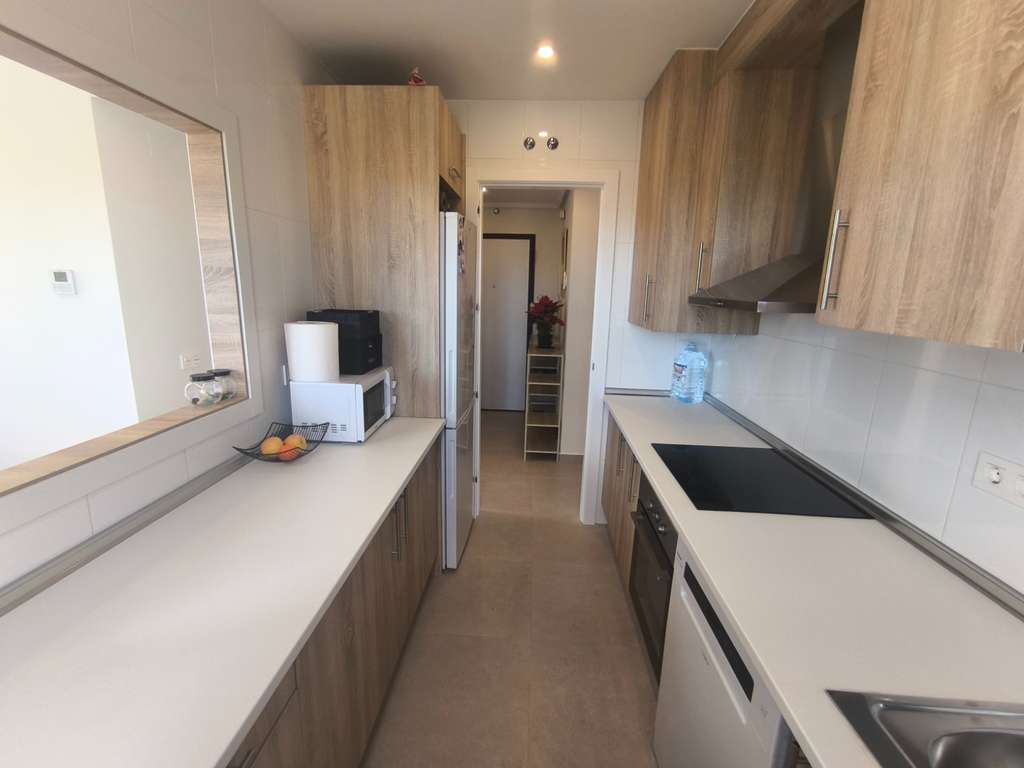 Dispone de una cocina amueblada y completamente equipada, además de una excelente orientación sur y este, que garantiza luminosidad durante todo el día. El apartamento se completa con dos amplias terrazas que suman un total de 56 m², una de ellas con acceso directo a la piscina comunitaria, perfecta para disfrutar del clima mediterráneo y del ocio al aire libre.
