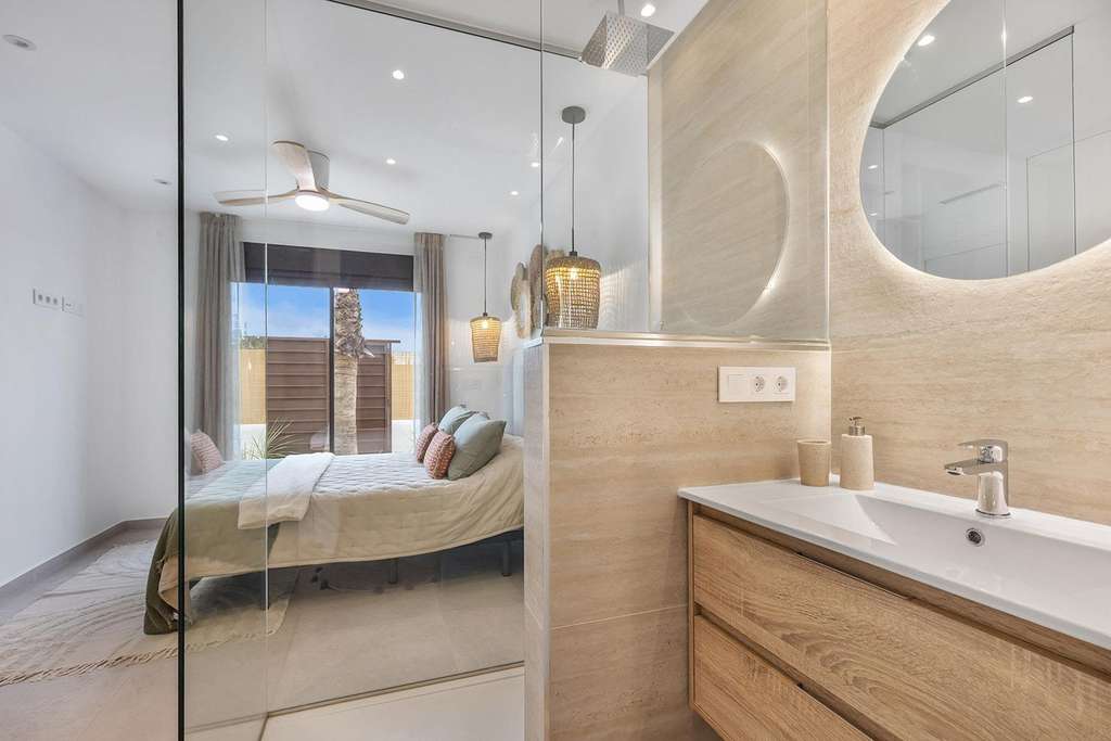 La promoción consta de 29 viviendas modernas de 2 o 3 dormitorios, diseñadas con líneas arquitectónicas limpias y acabados de alta calidad. Los compradores pueden elegir entre apartamentos en planta baja con jardín y terraza privados, viviendas en plantas intermedias con amplias terrazas o áticos con terraza privada y solárium en la azotea con vistas panorámicas. Muchas de las propiedades disfrutan de vistas al campo de golf Serena y al Mar Menor, lo que crea un entorno tranquilo y agradable.
