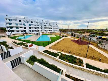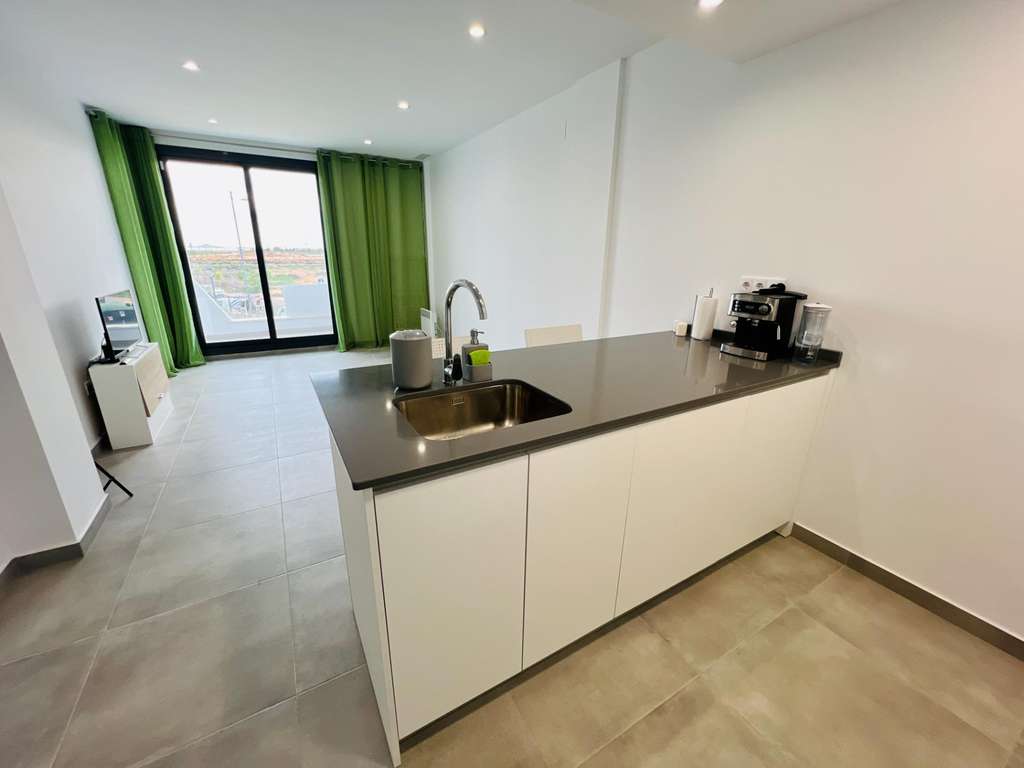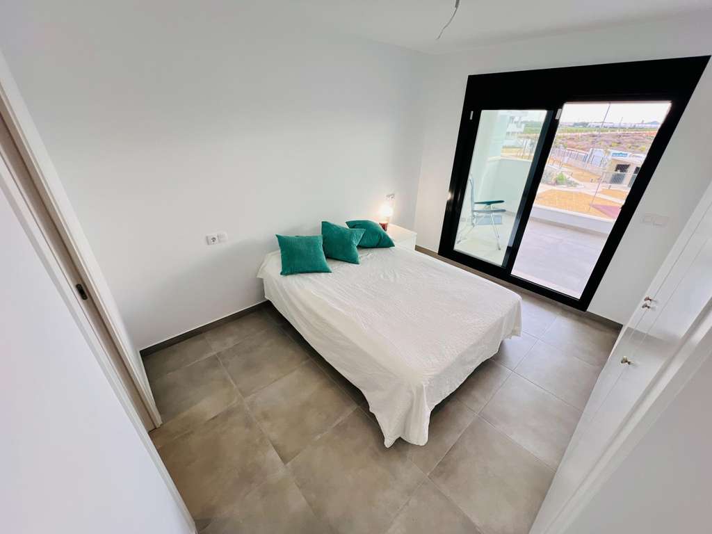 ¡Descubre tu nuevo hogar en este espectacular apartamento de obra nueva, listo para entrar a vivir en 2024! Situado en una tranquila zona residencial, este piso de 78 m² en la primera planta te ofrece todo lo que necesitas para disfrutar de una vida cómoda y relajada. Con dos dormitorios y dos baños completos, este espacio es ideal para parejas o pequeñas familias. La orientación sur garantiza una excelente luminosidad durante todo el día, mientras que las vistas despejadas te permitirán disfrutar de la serenidad del entorno con una gran terraza. El complejo cuenta con una impresionante piscina comunitaria y una playa artificial, perfectas para refrescarse en los días calurosos. Además, si eres amante del golf, estarás encantado de saber que hay varios campos de golf cerca. Las playas están a solo 5 km, ofreciéndole la posibilidad de disfrutar del mar en pocos minutos. Este apartamento incluye plaza de garaje y trastero, además de armarios empotrados para maximizar el espacio de almacenamiento. Construido con materiales de calidad, el piso terminado esta año 2024 cuenta con calefacción y aire acondicionado preinstalado para tu máximo confort. El edificio dispone de ascensor y está adaptado para personas con movilidad reducida, asegurando accesibilidad para todos. No pierdas la oportunidad de vivir en este enclave privilegiado que combina tranquilidad y comodidad. ¡Ven a visitarlo y enamórate de tu futuro hogar!