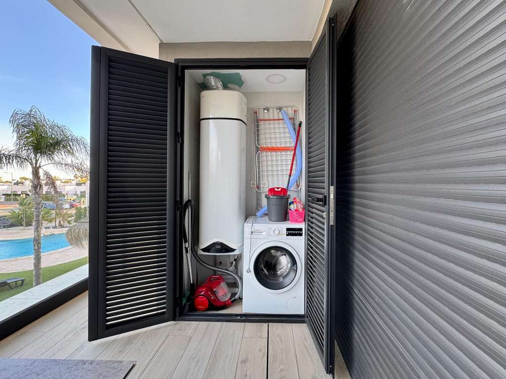 Experimenta un ambiente caribeño en la región de Murcia con este hermoso apartamento de 2 dormitorios y 2 baños en el exclusivo Santa Rosalía Lake & Life Resort, a solo 4 km del mar y del encantador pueblo de Los Alcázares. Esta urbanización cerrada combina la comodidad de un hogar propio con un estilo de vida de resort inigualable. El apartamento cuenta con dormitorios con armarios empotrados, baños modernos con acabados de alta calidad, un salón y cocina abiertos llenos de luz natural, una terraza con vistas a la laguna y al clima mediterráneo, aire acondicionado y calefacción para comodidad durante todo el año, plaza de garaje subterránea y un trastero de 10 m². Está totalmente amueblado, accesible para personas con movilidad reducida y se encuentra en la primera planta con ascensor. El resort ofrece un estilo de vida único con la laguna cristalina más grande de Europa, playas de arena blanca, dos islas privadas, opciones de deportes acuáticos como kayak, paddleboard o windsurf, un Beach Club con restaurante y gimnasio, instalaciones deportivas y zonas de bienestar con yoga, pilates, áreas de picnic y parques infantiles. Además, se encuentra a solo unos minutos de hermosas playas, ciudades históricas como Cartagena y Murcia, y prestigiosos campos de golf como Mar Menor Golf Resort y La Manga Club. Este apartamento es más que una propiedad: es un estilo de vida donde sol, agua, deporte, naturaleza y lujo se combinan en un solo lugar mágico, ideal como vivienda vacacional, inversión o residencia permanente. ¡Contáctanos hoy mismo para programar una visita y experimentar el estilo de vida de Santa Rosalía en persona!