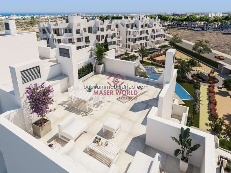 Residencial de obra nueva con 60 apartamentos distribuidos en 4 bloques con zona de terrazas para planta baja, primera y segunda, piscina comunitaria, piscina climatizada y solarium con cocina de verano en los áticos, para disfrutar de todas las horas de sol todos los días del año.
