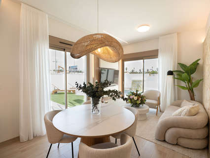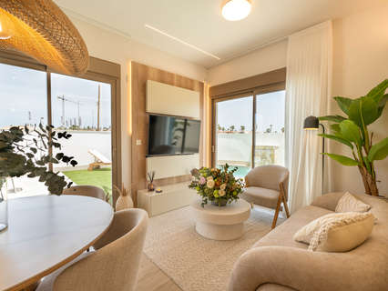 Descubre la oportunidad perfecta de adquirir un adosado en Los Alcázares, un entorno ideal para disfrutar de la vida costera. Este exclusivo conjunto de 19 propiedades ofrece una fusión impecable de comodidad y estilo, con 3 amplios dormitorios y 2 elegantes baños. Cada casa se caracteriza por su diseño contemporáneo y acabados de alta calidad, garantizando un ambiente acogedor y sofisticado.El jardín privado es un lugar ideal para relajarse y disfrutar del clima mediterráneo. Además, la propiedad cuenta con una terraza y un solárium, perfectos para tomar el sol o disfrutar de una cena al aire libre. Aunque no dispone de vistas al mar, se encuentra a solo 0.3 km de la playa, lo que la convierte en una excelente opción para los amantes del mar.La cocina está equipada con electrodomésticos modernos, facilitando la preparación de deliciosas comidas caseras. Las persianas eléctricas y el suelo de gres porcelánico añaden un toque de lujo y confort al hogar. Además, el sistema de video portero proporciona seguridad y tranquilidad para sus residentes.Cada adosado incluye una piscina privada, ofreciendo un espacio exclusivo para refrescarse en los días más calurosos. A pesar de no contar con piscina comunitaria, la comunidad ofrece un gimnasio y un parque infantil, proporcionando diversas opciones de entretenimiento para toda la familia. La cercanía al campo de golf, a solo 1.0 km, añade un atractivo adicional para los aficionados al deporte.En resumen: Un adosado moderno con todo lo necesario para disfrutar de una vida cómoda y relajada en la costa, a solo 42.0 km del aeropuerto. Ideal para aquellos que buscan un hogar listo para habitar en una zona tranquila pero vibrante. No pierdas esta oportunidad única con Moraga Immo.