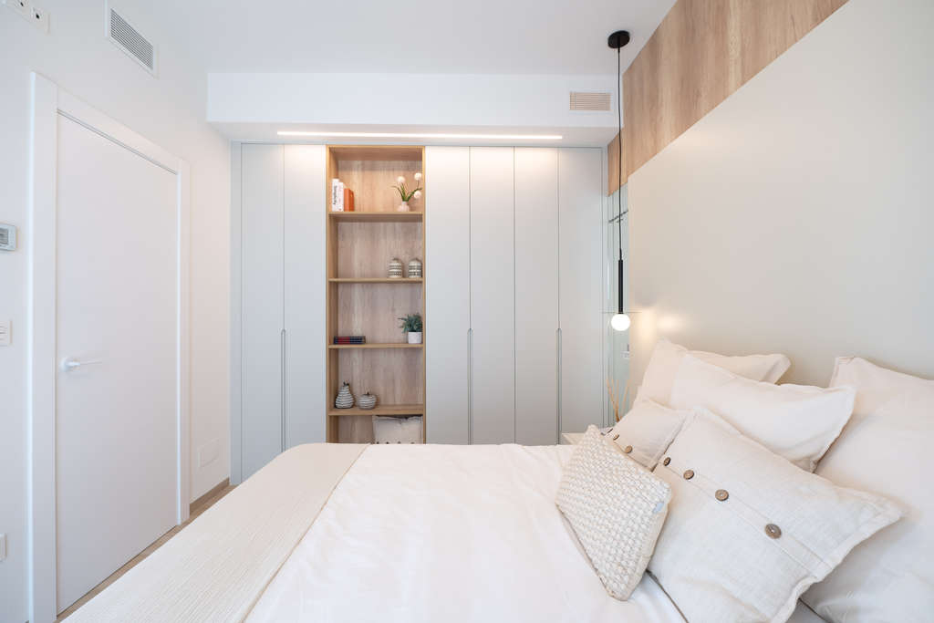 El interior de los adosados está pensado para ofrecer el máximo confort y funcionalidad. Con tres dormitorios y dos baños, cada espacio está optimizado para el bienestar de sus residentes. Los suelos de gres porcelánico aportan un toque de elegancia y son fáciles de mantener. La cocina está equipada con electrodomésticos modernos, facilitando las tareas diarias. El sistema de aire acondicionado garantiza una temperatura agradable durante todo el año. Las persianas eléctricas y el videoportero añaden un nivel extra de comodidad y seguridad. Los armarios empotrados en los dormitorios ofrecen un amplio espacio de almacenamiento, manteniendo el orden y la organización.