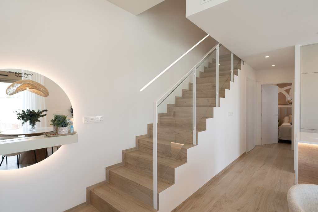 Cocina totalmente equipada con electrodomésticos incluidos. Baños totalmente equipados con espejos, muebles y mamparas de ducha. Aerotermia 150L A++ para agua caliente sanitaria Cuarto de lavandería integrado con conexión para lavadora. Persianas enrollables motorizadas Iluminación incluida Aire acondicionado instalado , frío/calor, mediante conductos (Opcional: Airzone) Videoportero Solárium con duchas, conexión para jacuzzi y tomas de luz y agua. Piscina privada en la planta baja.