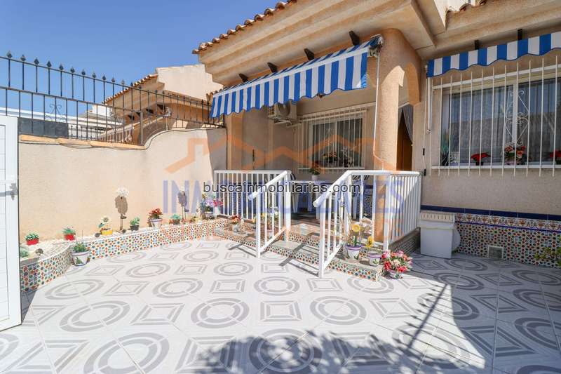 Este maravilloso dúplex cuenta con un jardín enlosado en su frente, con un porche ideal para disfrutar tus veladas acompañado del clima de la Costa Cálida. En su planta principal, encontramos un luminoso salón comedor, dos dormitorios dobles, un baño completo y cocina independiente totalmente equipada, con salida al patio trasero, por el que accederemos a la planta superior, que nos recibe con un increíble solárium privado, perfecto para los momentos de tranquilidad y tomar el sol, también cuenta con un dormitorio con un baño completo en suite y una buhardilla ideal como zona de almacenaje.