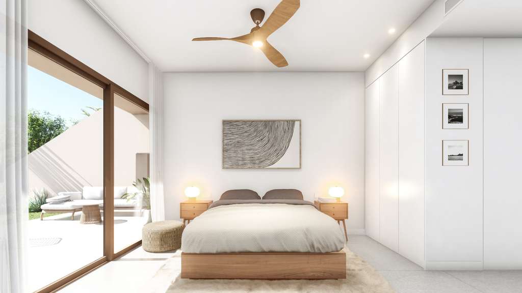 Además de tres dormitorios y dos baños, las viviendas de la planta baja también ofrecen una terraza delantera y un jardín con vistas a la piscina comunitaria y a los frondosos jardines. Además, la mayoría de las viviendas tienen un jardín trasero cerrado con aparcamiento. Los áticos también disponen de tres dormitorios y dos baños, un balcón con vistas a la piscina y una amplia terraza en la azotea con cocina de verano. También incluyen aparcamiento privado y trastero.