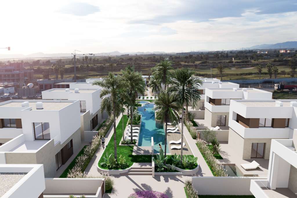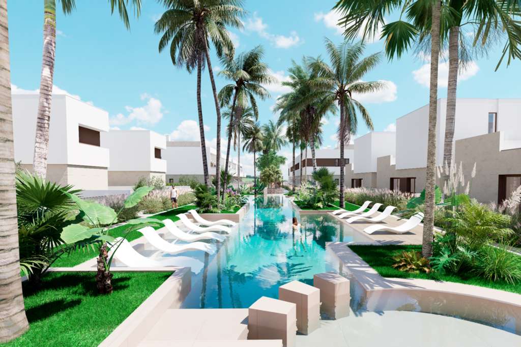 La villa contará con tres amplios dormitorios y tres baños completos , todos ubicados en la planta baja. La superficie construida es de 121,60 m² , incluyendo un solárium de 74,06 m² . La parcela incluirá una piscina de 19,25 m² rodeada de un jardín paisajístico con césped artificial.