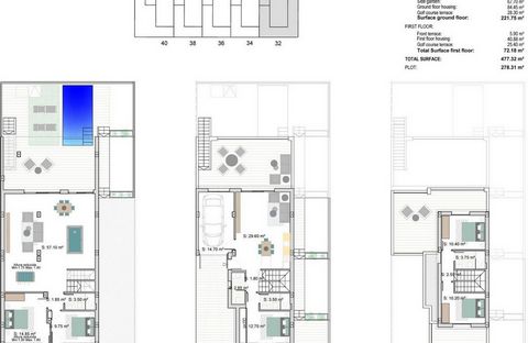 Villas pareadas e independientes de obra nueva en La Serena Golf-Los Alcázares Descubra la casa de sus sueños en las impresionantes villas pareadas e independientes situadas en primera línea del campo de golf La Serena en Los Alcázares, donde la vida moderna se encuentra con impresionantes vistas al golf. Estas casas de 3 dormitorios y 4 baños, meticulosamente diseñadas, son perfectas para familias que buscan lujo, comodidad y un toque de encanto mediterráneo. Dormitorios y Baños: Tres amplios dormitorios, diseñados pensando en la comodidad. Cada dormitorio tiene armarios empotrados, asegurando un amplio almacenamiento. Cuatro cuartos de baño contemporáneos, con accesorios y acabados de alta calidad. Una acogedora cocina de planta abierta y sala de estar, ideal para el entretenimiento y reuniones familiares. Amplia sala de estar con grandes ventanales que bañan el espacio de luz natural y ofrecen impresionantes vistas al campo de golf. Un sótano generoso que puede ser utilizado como un área recreativa, gimnasio en casa, o almacenamiento adicional. Plaza de garaje dedicada para el estacionamiento seguro y comodidad. Piscina privada rodeada de un hermoso jardín, perfecto para relajarse y disfrutar del sol. Amplia terraza para comer al aire libre y entretenimiento, con pintorescas vistas al campo de golf. Instalación de aire acondicionado y calefacción para mayor comodidad durante todo el año. Proximidad a los servicios locales, incluyendo tiendas, restaurantes y, por supuesto, campos de golf de clase mundial. Los Alcázares es conocida por sus hermosas playas, comunidad vibrante, y una gran cantidad de actividades al aire libre. La ubicación ofrece un equilibrio perfecto de tranquilidad y accesibilidad, por lo que es un lugar ideal tanto para los turistas como para los residentes de todo el año. Esta propiedad es una mezcla perfecta de arquitectura moderna, comodidad y ocio. ¡No pierda la oportunidad de poseer un pedazo de paraíso en Los Alcázares!