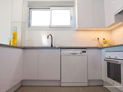 Cocina equipada con fregadero de acero inoxidable, nevera, lavavajillas, vitrocerámica (3 zonas de cocción), horno y campana extractora. Electrodomésticos de cocina Siemens.