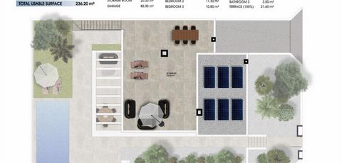 Las villas tienen 3 dormitorios y 3 baños, sótano con garaje y trastero, piscina privada y solárium privado.