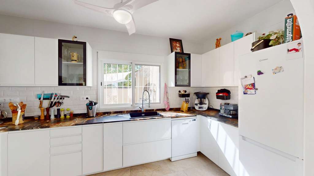 En la popular zona de Los Narejos, presentamos con orgullo una villa única, completamente reformada, con una amplia piscina privada. Esta elegante vivienda ofrece cinco dormitorios y tres baños, además de un despacho independiente que también puede utilizarse como vestidor. La cocina abierta se integra a la perfección con el comedor y el salón, creando un ambiente luminoso y espacioso. La villa se asienta sobre una generosa parcela de 483 m² con un jardín de diseño paisajístico y una encantadora cocina exterior, ideal para disfrutar del clima mediterráneo durante todo el año. Una de sus mayores ventajas es el garaje, un verdadero lujo en esta codiciada zona. Toda la propiedad está equipada con aire acondicionado, garantizando el confort en cualquier época del año. Desde el jardín, se accede directamente a un tranquilo parque, que proporciona mayor privacidad y un agradable entorno verde. La ubicación es perfecta: a tan solo un kilómetro de las playas del Mar Menor y a poca distancia a pie del mercadillo semanal de los sábados y de todos los servicios. Esta villa combina espacio, confort y una excelente ubicación en una tranquila zona residencial. No dude en contactarnos para concertar una visita; esta joya no estará disponible por mucho tiempo.