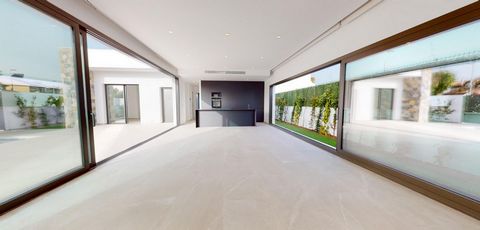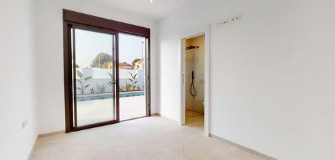 Villas modernas dispone de 3 dormitorios, 3 baños, cocina americana con salón, terraza, solarium, jardín privado con la piscina y plaza de aparcamiento.