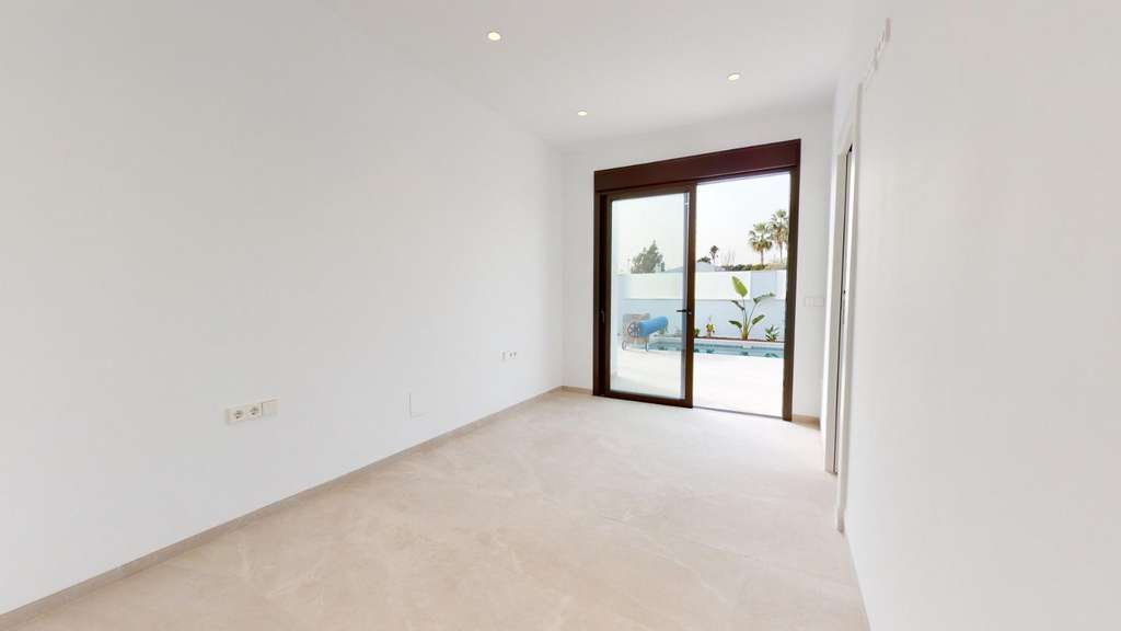 Villas modernas dispone de 3 dormitorios, 3 baños, cocina americana con salón, terraza, solarium, jardín privado con la piscina y plaza de aparcamiento.