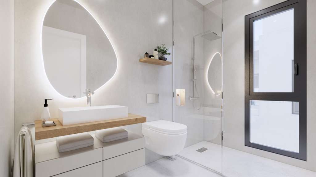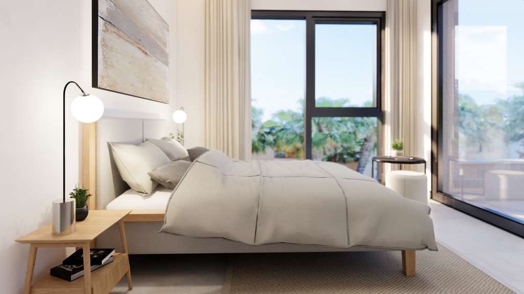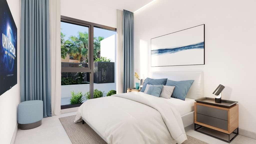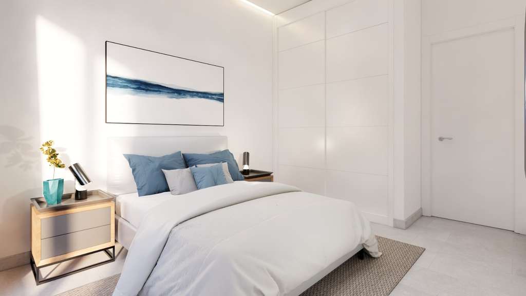 El interior de estas villas refleja lujo y confort en cada detalle. Con distribuciones amplias y luminosas, las viviendas cuentan con tres dormitorios dobles, dos baños y un aseo. Las cocinas modernas y completamente equipadas incluyen electrodomésticos integrados de alta gama y encimeras de materiales premium. Los baños están diseñados con acabados elegantes, como platos de ducha de resina y grifería de alta calidad. Además, cada planta dispone de climatización por conductos y persianas eléctricas, garantizando el confort durante todo el año.
