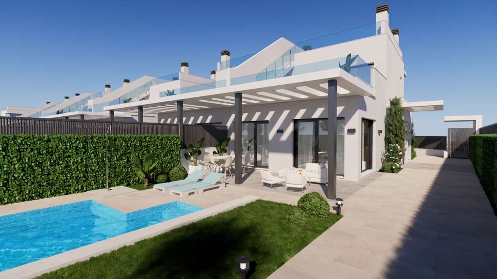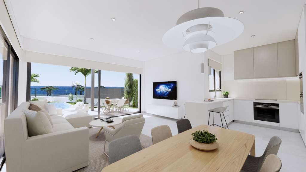 Estas exclusivas villas de lujo de nueva construcción ofrecen un estilo de vida privilegiado frente al mar en la codiciada zona de Los Alcázares, Murcia. Situadas en primera línea de playa, estas nueve villas combinan diseño moderno, acabados de alta gama y comodidad, creando un refugio costero único. Cada vivienda cuenta con una piscina privada, amplias terrazas y vistas impresionantes al Mar Menor, ofreciendo un entorno perfecto para disfrutar de la tranquilidad de la Costa Cálida. Los Alcázares, en plena Costa Cálida, es un enclave privilegiado que combina playas de aguas tranquilas, campos de golf cercanos y una rica oferta de ocio y gastronomía. Con fácil acceso a centros comerciales y al aeropuerto internacional de Murcia, estas villas están estratégicamente ubicadas para disfrutar de todas las ventajas de la vida costera, ya sea como residencia principal, casa de vacaciones o inversión.