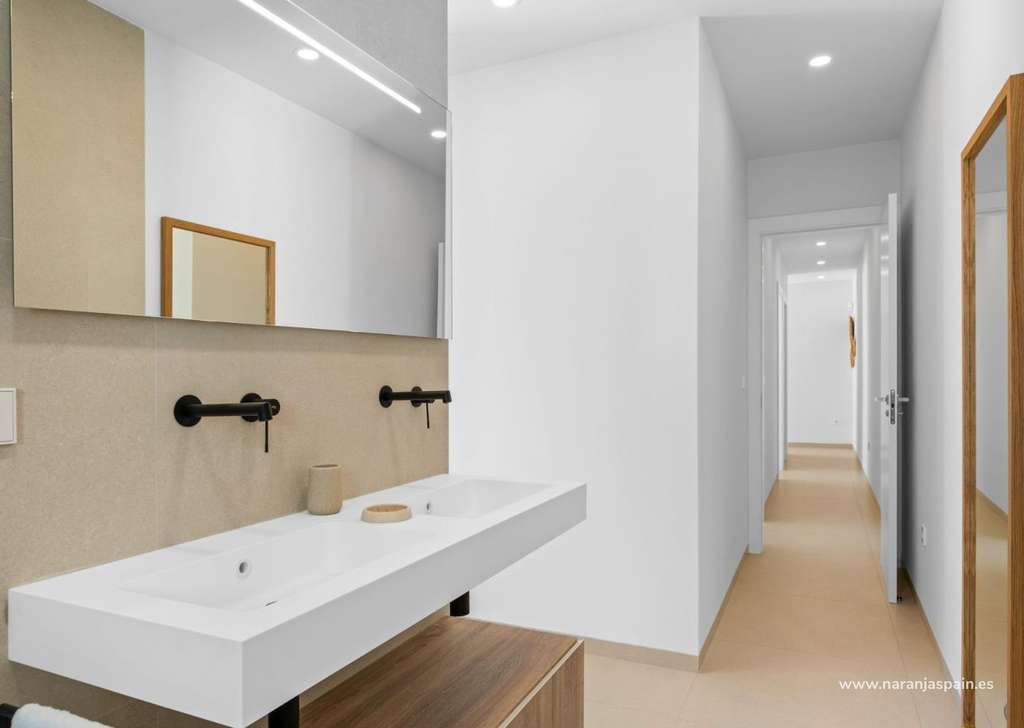 Acabados de alta calidad y equipamiento modernoEstas villas están construidas con materiales de alta calidad y equipadas con características modernas. Las cocinas, totalmente equipadas, están disponibles en acabado blanco brillante o madera e incluyen encimeras de cuarzo, fregadero de acero inoxidable, placa de inducción con extractor integrado, horno, microondas, lavadora, frigorífico integrado y lavavajillas. Los baños están equipados con muebles, espejos, iluminación y calentadores eléctricos de toallas. Otras características adicionales son las persianas eléctricas en los dormitorios, la iluminación LED en toda la propiedad y un completo sistema de aire acondicionado por conductos de Fujitsu.