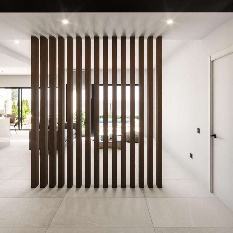 Exclusivas villas de una sola planta con piscinas privadasLas 10 villas independientes cuentan con 3 dormitorios, 2 baños y un aseo, todo en una sola planta, diseñadas para una vida interior y exterior sin límites. Cada villa incluye una piscina privada, un jardín, un trastero y aparcamiento privado. Su ubicación en primera línea del campo de golf ofrece unas vistas sin obstáculos.