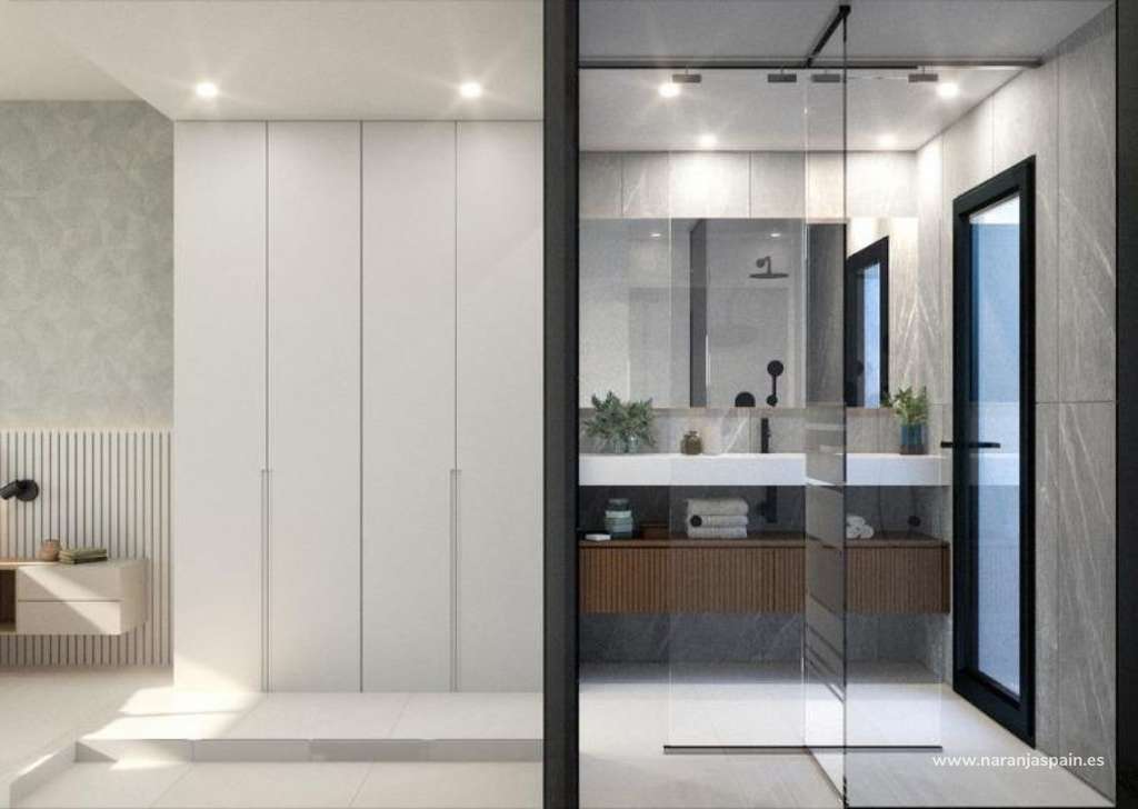 Carpintería exterior de aluminio con rotura de puente térmico y persianas motorizadasIluminación LED e interruptores de diseño negro en toda la viviendaBaños equipados con platos de ducha de resina y mamparas de cristalAire acondicionado por conductos preinstaladoAscensores en los bloques de apartamentosTrasteros en las villasCocina moderna y zonas de estar diáfanas
