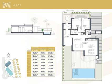 Exclusivas villas de una sola planta con piscinas privadasLas 10 villas independientes cuentan con 3 dormitorios, 2 baños y un aseo, todo en una sola planta, diseñadas para una vida interior y exterior sin límites. Cada villa incluye una piscina privada, un jardín, un trastero y aparcamiento privado. Su ubicación en primera línea del campo de golf ofrece unas vistas sin obstáculos.
