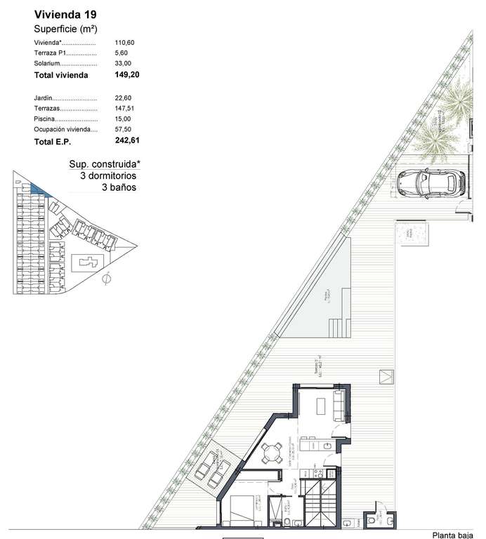 Villas modernas con piscina privada y vida al aire libreCada propiedad cuenta con una parcela privada con su propia piscina, lo que crea el entorno perfecto para disfrutar del clima mediterráneo durante todo el año. Las viviendas incluyen 3 dormitorios y 2 o 3 baños, además de aseos para invitados, lo que ofrece espacios cómodos y funcionales, ideales para familias o invitados.