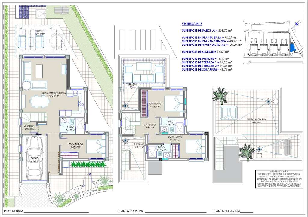 El proyecto incluye nueve villas en total: ocho adosadas y una independiente, cada una de las cuales ocupa parcelas de más de 300 metros cuadrados. Estas espaciosas propiedades están diseñadas para ofrecer elegancia y comodidad, y cuentan con: