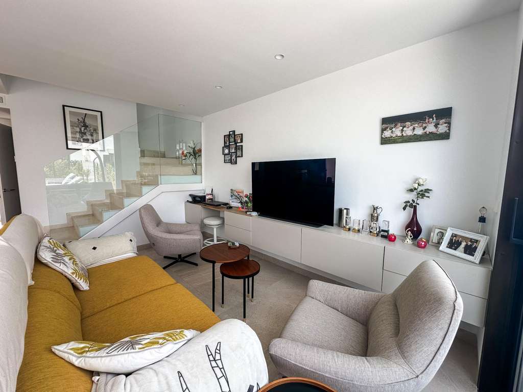 Moderna villa de 3 dormitorios con gran sótano en Los Alcázares – Resort de lujo Elegante villa independiente situada en uno de los resorts más exclusivos de Los Alcázares (Murcia), con un diseño contemporáneo, acabados de alta calidad y un amplio sótano de 96 m² con luz natural. La planta baja ofrece un salón-comedor de concepto abierto, una cocina moderna, un dormitorio con armarios empotrados, un baño completo y un jardín privado con aparcamiento dentro de la parcela. En la primera planta se encuentra otro dormitorio con armarios empotrados, un baño y acceso directo a una terraza de estilo mediterráneo. La villa incluye aire acondicionado (frío/calor), suelo radiante en ambos baños, persianas eléctricas, iluminación LED y domótica. El amplio sótano es uno de los grandes atractivos: gracias a un tragaluz inteligente, entra luz natural, lo que permite crear un gimnasio, oficina, sala de cine, zona de juegos, trastero o incluso dormitorios adicionales. Ubicada dentro de un resort único de 700.000 m² rodeado de naturaleza, los residentes disfrutan de instalaciones excepcionales: una espectacular Crystal Lagoon con 8.000 m² de playa, beach club, zonas deportivas, senderos, kayak, paddle surf y mucho más. Perfectamente situada cerca de 17 campos de golf y a pocos minutos de las playas, restaurantes y comercios de Los Alcázares. El aeropuerto de Murcia está a solo 25 minutos y el de Alicante a menos de una hora.