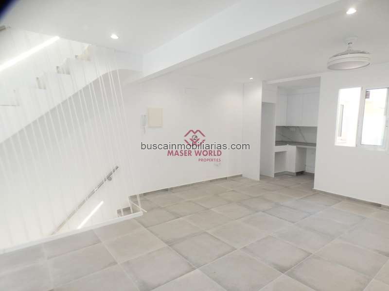 En la primera planta encontramos un amplio y luminoso salón con cocina americana totalmente amueblada ( sin electrodomésticos), un pequeño balcón, un dormitorio y un baño. En el segundo piso se encuentran tres amplios dormitorios, un baño completo y una pequeña terraza.