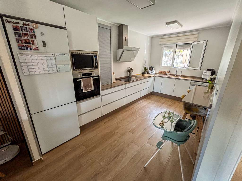 Distribuida en tres plantas, esta casa ofrece una vivienda familiar de alta calidad. En el sótano encontramos un garaje con capacidad para dos vehículos, espacio de almacenaje adicional y un lavadero independiente totalmente equipado con lavadora, secadora y armario a medida.