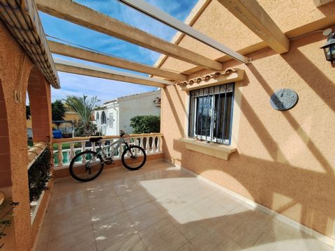 This 2 bedroom, 2 bathroom Rosa style villa is, located on the Final phase of Camposol, Mazarron, Murcia.The villa sits on a 400m2 plot and the walls have been raised providing privacy and security and is located in a quiet area. The gardens have mature plants, shrubs, fruit trees.A flight of steps lead up to the front terrace that has been roofed and glazed to provide respite from the heat of the sun, the area also doubles as a pleasant outdoor dining area.The roofed front terrace which leads to the spacious lounge with feature fireplace, and an inset log burning Fire for the winter months.The separate dining area is adjacent to the fully fitted kitchen that includes White Goods such as oven/hob, fridge/freezer.The master bedroom is double in size has fitted wardrobes and benefits an en-suite to include shower, WC, and sink.The second bedroom is a double room. This room can be configured as a twin or double room if desired with fitted wardrobes.Opposite the 2nd bedroom is the family bathroom, with shower, WC, sink and has a washing machine.To the side of the villa there is the concrete staircase leads to the excellent roof top solarium there excellent views to the mountains.The villa is in good condition, and has air conditioning and internet.The popular beaches of Puerto de Mazarrón are just 15 minutes by car and the airports of Alicante and Corvera are just 1 hour and 25 minutes respectively.