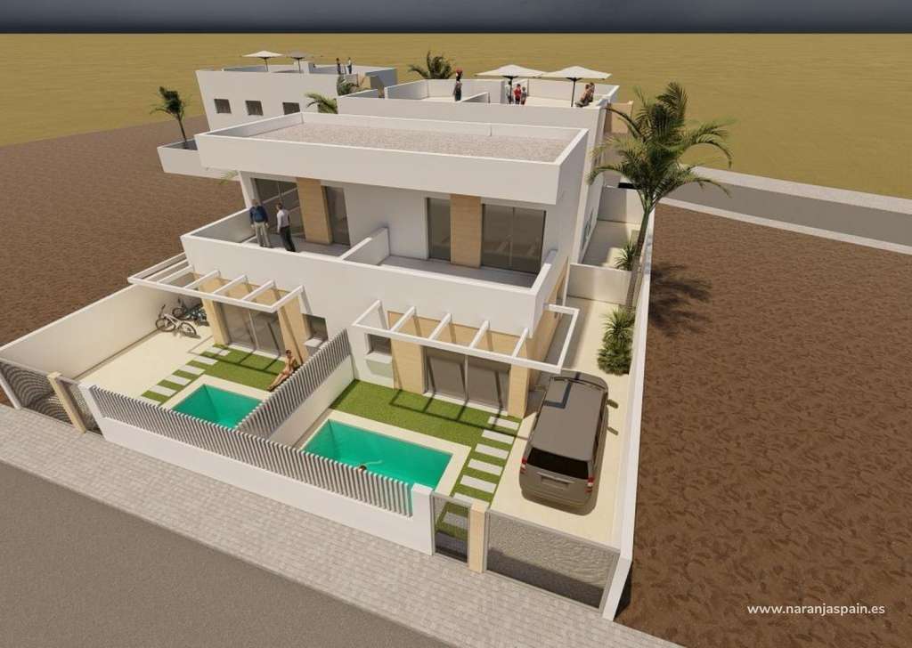 Diseño moderno y distribuciones funcionalesEsta exclusiva promoción se compone de tan solo 10 viviendas de las cuales quedan disponibles 2 pareados, cada uno con 2 dormitorios y 2 baños. La vivienda, distribuida en 2 plantas, dispone de salón-cocina en planta baja, junto con un dormitorio y un baño, con acceso a la terraza privada con zona de parking y posibilidad de instalar una piscina privada con un coste extra, por unas escaleras se accede a la planta superior donde se encuentra el dormitorio principal con baño ensuite y acceso a una terraza descubierta de 16 m2 donde poder tomar el sol y disfrutar de estupendas vistas al mar.