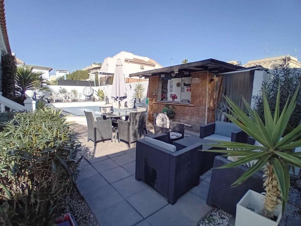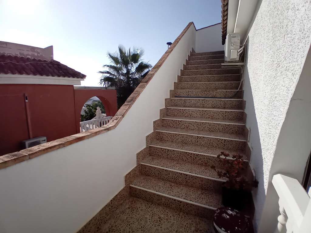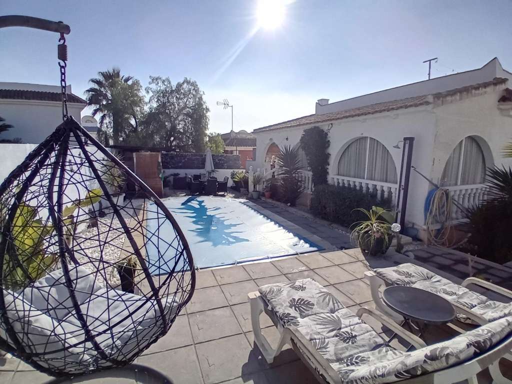 Ubicada en la popular urbanización internacional de Camposol, esta villa independiente ofrece una maravillosa combinación de estilo, comodidad y vida al aire libre. Ubicada en una generosa parcela de 350 m² y con cerca de 100 m² de espacio interior, la casa presenta una distribución acogedora, impecablemente mantenida desde su construcción en 2007. La propiedad se encuentra en una posición elevada en una de las zonas más tranquilas de la urbanización. Capturando la primera luz del día con tranquilos amaneceres desde el solárium de la azotea, al caer la noche, la vista se transforma en cálidos y amplios atardeceres enmarcados por las vistas a las montañas que se extienden por el valle hacia Mazarrón, a solo 10 minutos en coche. Diseñada para disfrutar durante todo el año, la villa cuenta con aire acondicionado frío/calor y un salón de verano acristalado con vistas a la piscina privada. Los espacios exteriores están cuidadosamente distribuidos, ofreciendo una terraza para relajarse, un bar y una zona de entretenimiento con amplios asientos, y mucho espacio para disfrutar del clima mediterráneo. Para quienes disfrutan de largos paseos por el campo, especialmente si tienen perro, la villa está idealmente ubicada a solo 50 metros de campo abierto, con kilómetros de senderos pintorescos para explorar. El sótano, con un gran potencial, ofrece una excelente oportunidad para reformas. Ya sea que se imagine un taller, una sala de ocio, dormitorios adicionales, un gimnasio o incluso una sala de cine, esta versátil área invita a la creatividad. La ubicación ofrece un excelente acceso a los lugares más destacados de la región: * Aeropuerto RMU: aproximadamente 30 minutos * Centro histórico de Cartagena: aproximadamente 30 minutos * Centro de Murcia: aproximadamente 30 minutos * Camposol Golf y un animado centro comercial: 5 minutos * Condado de Alhama Golf Resort: 15 minutos * Hermosas playas de Bolnuevo y Puerto de Mazarrón: a solo 15 minutos en coche Esta elegante villa combina un tranquilo entorno rural con la comodidad y el estilo de vida que busca, convirtiéndola en la opción ideal para turistas, residentes permanentes o quienes buscan un lugar vibrante y relajado en la región de Murcia.