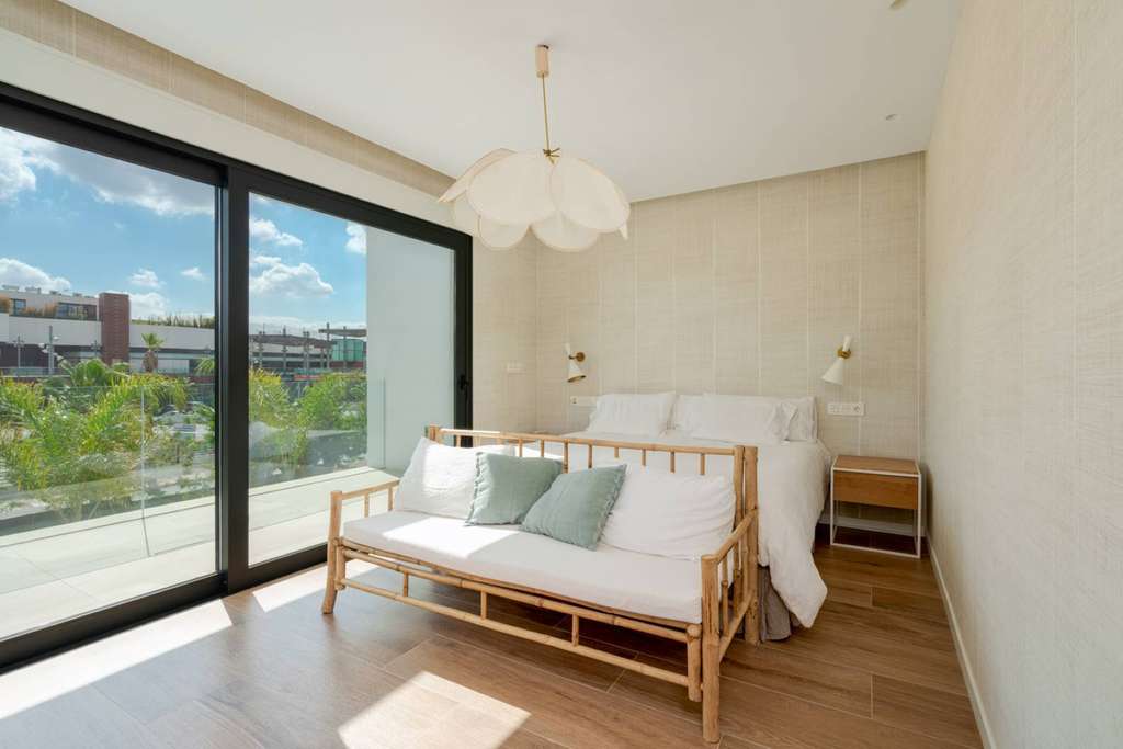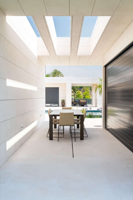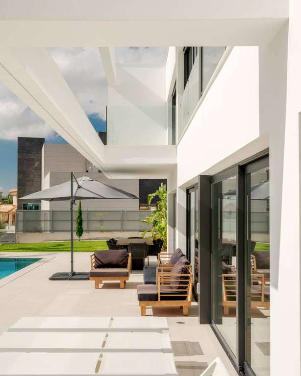 Los exteriores de estas villas están diseñados para maximizar el disfrute del clima mediterráneo. Cada villa dispone de una parcela de 501 m² con un jardín privado y una piscina, perfecta para refrescarse y relajarse en los días soleados. La terraza, con 14 m², ofrece un espacio ideal para comidas al aire libre o simplemente disfrutar del entorno natural. La parcela está completamente vallada, proporcionando privacidad y seguridad. Además, la plaza de aparcamiento facilita el estacionamiento de vehículos, añadiendo comodidad al día a día.