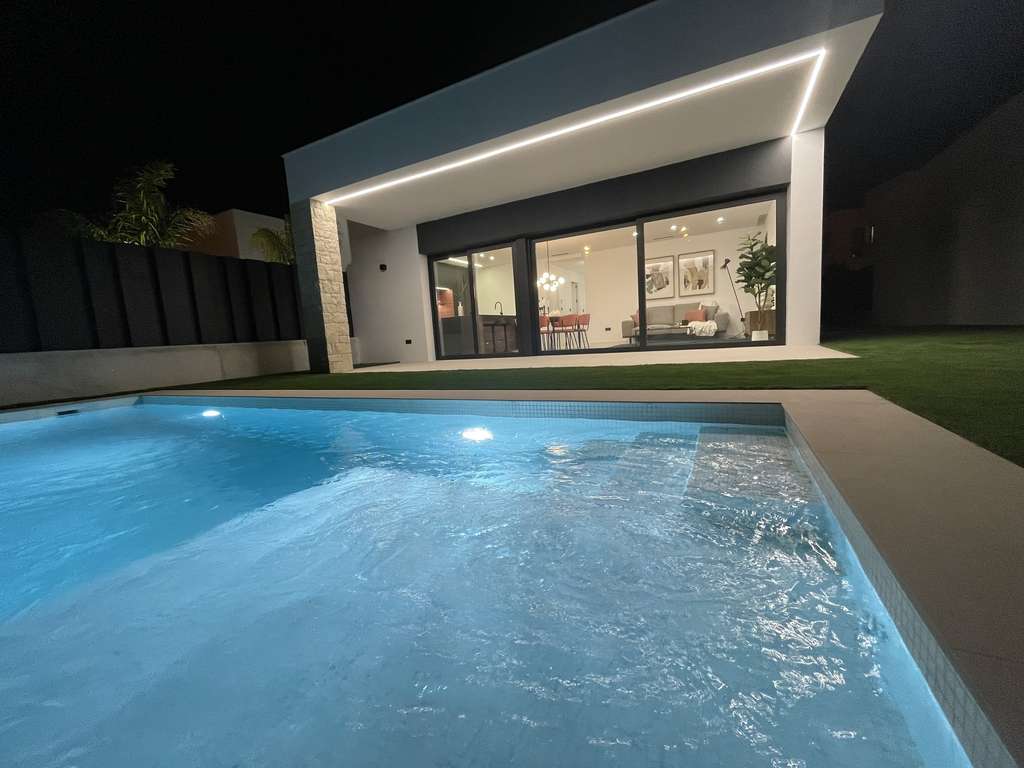 Descubra las exclusivas villas de obra nueva en Molina de Segura, diseñadas en una sola planta para ofrecer comodidad y funcionalidad. Estas modernas viviendas cuentan con 3 dormitorios, 2 baños, cocina americana con amplio salón, armarios empotrados, terraza, jardín privado con piscina y plaza de aparcamiento. Situadas en una urbanización privada con seguridad 24 horas, las villas se encuentran rodeadas de naturaleza y montañas, proporcionando un entorno tranquilo y seguro. Con una excelente ubicación, están a poca distancia de supermercados, centros comerciales, colegios internacionales y a solo 30 minutos del aeropuerto de Murcia.