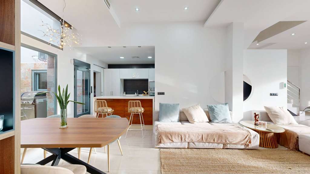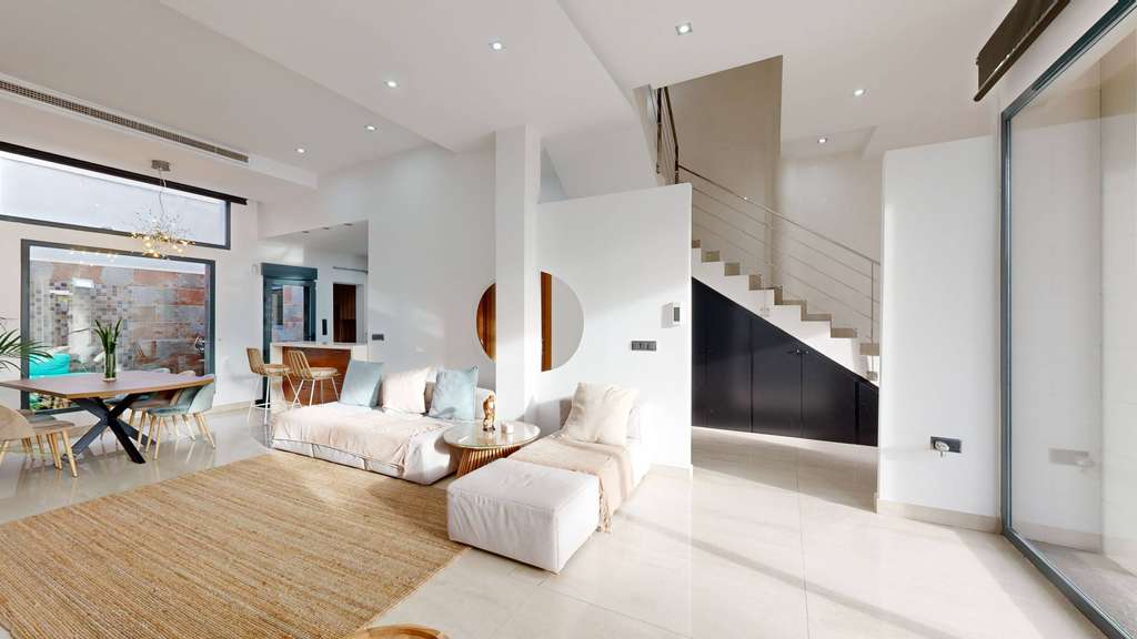 Se vende este maravilloso chalet en el Llano de Molina, de 207 m2 de superficie construida, distribuida en 3 plantas aprovechadas para disfrutar de un confortable hogar. La extrema calidad en los materiales utilizados en su reforma y el cuidadoso diseño con estilo de cada rincón, te hipnotizan al conocerlo. Domotizado, haciéndote la vida más fácil y cómoda. La puerta del garaje está motorizada al igual que los estores, extractor de encimera empotrado en cocina, calientaplatos, música ambiental en aseo de planta baja, dos aparatos de aire acondicionado por conductos y en planta superior consola fujitsu, termo con placa solar y regulador de temperatura del agua. En planta baja, al acceder a la vivienda se encuentra el espacio de aparcamiento semi techado y un pequeño porche con jardinera; al entrar.... la escalera y un recibidor que se comunica con un amplio acogedor salón comedor que se integra a una cocina abierta con isla, que a su vez permite el acceso a la galería y al patio de 11 m2, además un aseo. El suelo es porcelánico de grandes dimensiones, techos muy altos y la pared de TV de pizarra retroiluminada. El mobiliario hecho a medida de alta carpintería. En primera planta se encuentran las 3 habitaciones, todas amplias aunque la principal súper espaciosa, con un vestidor, tocador con iluminación y un baño con bañera de hidromasaje con cambio de luces y varios modos de propulsión, además ducha, con dos lavamanos y un váter más privado, también otro baño para las otras habitaciones con dos lavamanos. Suelo de tarima excepto en baños que es porcelánico. La segunda planta tiene una oficina y barra de bar retroiluminada, hecha a medida, de madera de alta calidad, gris antracita antihuella, y dos terrazas (total 51 m2), una de ellas orientada a la fachada principal con agradables vistas, ideal para compartir con familiares y amigos en un espacio abierto, con suelo de césped de alta calidad de 47mm (el mismo empleado en patio de planta baja), que te permite sentir el frescor del exterior en moderno confort y te proporciona un ambiente especial. Las ventanas son de aluminio gris antracita con cristal de aislamiento térmico y acústico, sistema de seguridad de vídeo vigilancia con perimetral, barandillas de escaleras de acero inoxidable y la terminación de las paredes que la enmarcan, con estuco veneciano. Se alquila amueblada excluyendo algunos muebles personales y de decoración. El hilo musical, las luces que cambian de color y la luminosidad natural que la caracteriza, te hacen vivir una increíble magia que puedes convertir en tu día a día, en tu rutina imposible de aburrir.... Llano de Molina es la pedanía más joven, la segunda en importancia y una de las más grandes de Molina de Segura, que dista a 5 Km de ésta y 15 Km de la Ciudad de Murcia. Su población es joven y de familias que deciden una vida más tranquila. La vivienda se inserta en una zona de crecimiento rodeada de confortables chalets y dúplex aislados y pareados que se integran a un medio rural. Ponte en contacto con nosotros, podrás tener toda la información necesaria y en la visita podrás imaginar el confort que tendrás en tu vida, si tomas la decisión de hacerlo tu hogar.