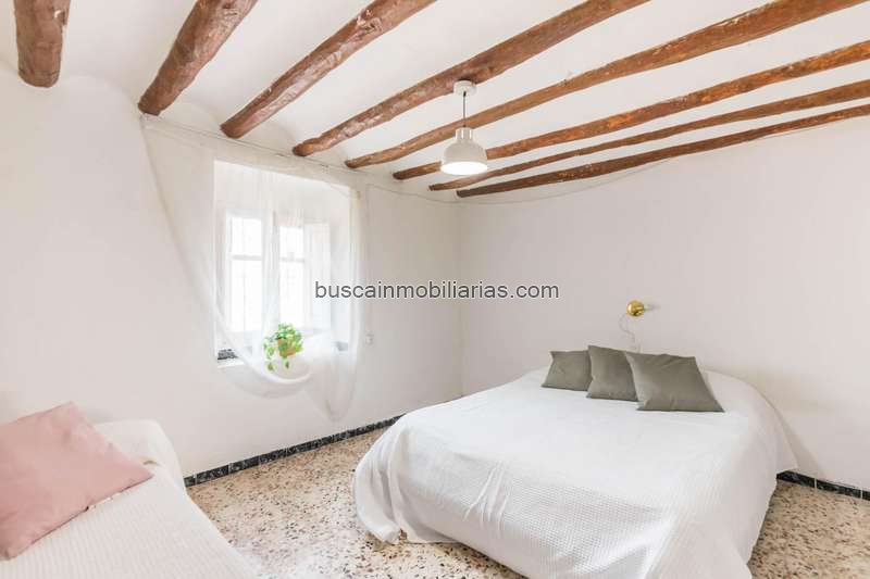Desde el primer momento, la vivienda transmite ese aire auténtico de las casas de antes: vigas vistas, estancias amplias, muros sólidos y una sensación de calma difícil de encontrar hoy en día. El salón-comedor, amplio y presidido por una chimenea, invita a disfrutar de los inviernos fríos de Moratalla, donde incluso nieva, creando momentos mágicos.