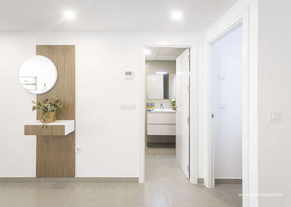 Esta urbanización está ubicada en la zona de mayor expansión de La Manga. En esta nueva urbanización las viviendas han sido diseñadas para aprovechar cada rincón de la casa, así como el cuidado en la elección de los materiales y su diseño. Apartamentos con puerta de entrada blindada y puertas lacadas en blanco con herrajes de acero inoxidable. Persianas blancas, monobloque y doble acristalamiento con cámara de aire. En el dormitorio principal armario empotrado con puertas correderas, con balda separadora en el entrepiso, barra y cómoda de tres cajones. Cocina con mueble alto y bajo, en color blanco, tirador tipo gola, fregadero 1 seno con escurridor, vitrocerámica, horno eléctrico y campana extractora. Preinstalación de aire acondicionado (frío y calor) mediante conductos con provisión de zonificación de estancias.