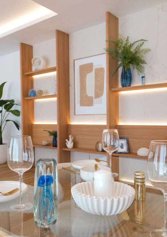 El diseño interior de las viviendas en este residencial de La Manga está pensado para ofrecer el máximo confort y funcionalidad. Los apartamentos y áticos disponibles cuentan con una distribución que incluye opciones de 1, 2 y 3 dormitorios, así como 1, 2 y 3 baños, adaptándose a las necesidades de diferentes tipos de familias. Los suelos de gres porcelánico aportan un toque moderno y elegante, mientras que los electrodomésticos integrados aseguran una experiencia de vida cómoda y eficiente. Los armarios empotrados están diseñados para optimizar el espacio, proporcionando soluciones de almacenamiento prácticas y estéticas. Cada detalle ha sido cuidadosamente considerado para crear un ambiente acogedor y sofisticado.