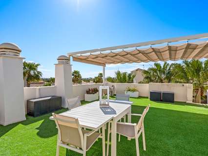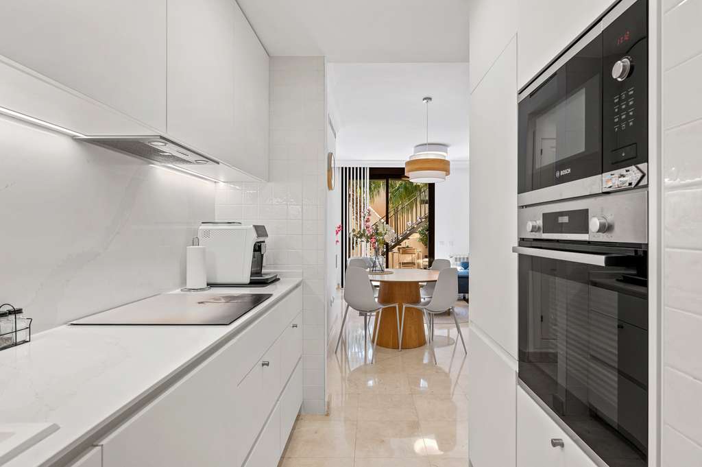 Esta elegante propiedad está lista para entrar a vivir. Gracias a su excelente orientación sur, podrá disfrutar del sol en la terraza durante todo el día, hasta bien entrada la noche, con preciosas vistas a los jardines. Una escalera en la terraza conduce a la espaciosa terraza privada en la azotea, donde podrá disfrutar de impresionantes vistas panorámicas. El apartamento cuenta con dos cómodas habitaciones y dos modernos baños, uno de ellos en suite con ducha a ras de suelo. La propiedad se ofrece totalmente amueblada y lista para entrar a vivir. La cocina abierta ha sido recientemente reformada por completo y está equipada con electrodomésticos Bosch de alta gama. Toda la vivienda ha sido decorada con mucho gusto, prestando gran atención a los detalles y utilizando materiales de primera calidad. Para mayor comodidad, dispone de ascensor, una plaza de aparcamiento privada en el garaje subterráneo seguro y un amplio trastero. Roda Golf & Beach Resort es una urbanización cerrada y segura con vigilancia 24/7, donde la tranquilidad, la seguridad y el confort son primordiales. La Fase 1 incluye cinco piscinas, jardines impecablemente cuidados y un campo de golf de 18 hoyos. La encantadora casa club, a poca distancia a pie, constituye el vibrante corazón del complejo. La ubicación es ideal: a tan solo 500 metros del auténtico pueblo de Roda, con un pequeño supermercado, acogedores restaurantes y una peluquería. Supermercados más grandes se encuentran a 1,5 km, y las extensas playas de Los Alcázares están a solo 3 km.