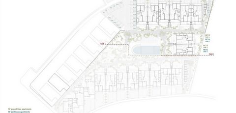 Los 18 bungalows de la planta baja cuentan con una terraza interior y un jardín que dan a los jardines comunitarios y a la zona de la piscina, así como una gran terraza trasera cerrada y un jardín.