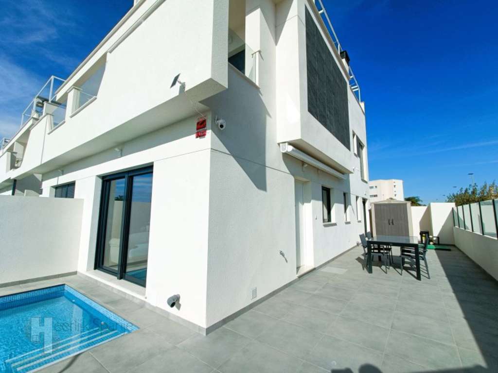 Esta casa de esquina orientada al sur en Santiago de la Ribera está a un tiro de piedra (500m) de la playa con un tranquilo parque al otro lado de la calle.
