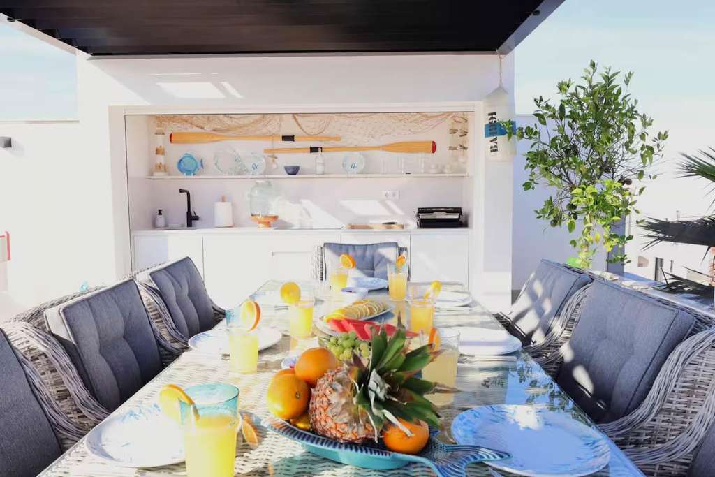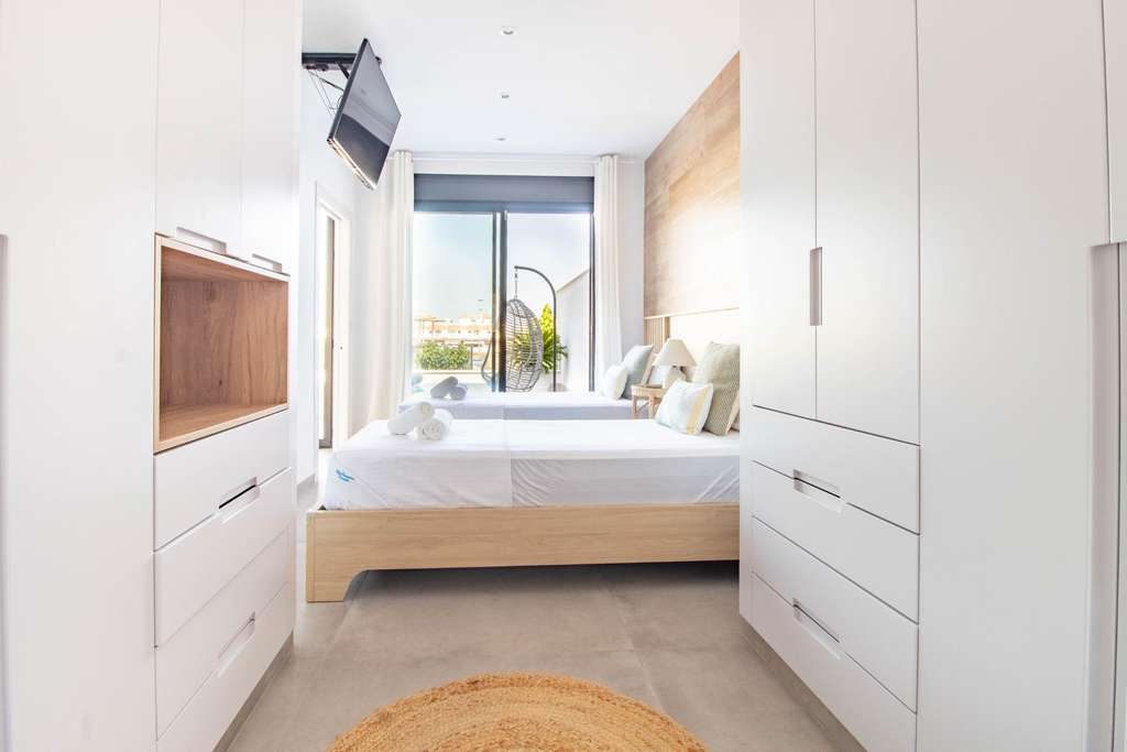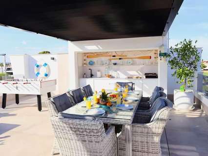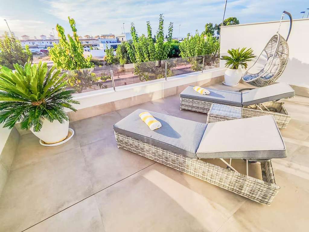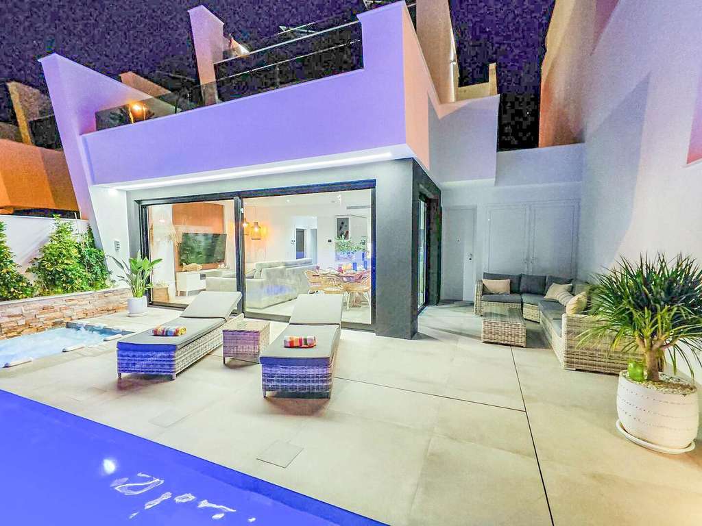 Descubre esta casa de vacaciones totalmente equipada con piscina privada, jacuzzi y cocina en la azotea, ideal para disfrutar del clima y la tranquilidad del entorno.~Con capacidad para grupos de hasta 8 personas, esta villa es perfecta para familias o amigos que buscan comodidad y cercanía al mar, situada a solo 800 metros de playas de arena. ~Dispone de amplias zonas exteriores, espacios luminosos y todo lo necesario para disfrutar de estancias confortables cerca de la costa, con privacidad y espacio para relajarse.~~Dispone de 3 amplios dormitorios, 2 de ellos con terraza privada y baños en suite.~Habitaciones con camas dobles, armarios empotrados y TV con mando. Acceso a terraza con palmera y árboles frutales, ideal para relajarse. Baños en suite con suelo radiante y ducha amplia. Persianas eléctricas para un descanso perfecto. Puedes disfrutar de pomelos y naranjas directamente de los árboles.~~Salón amplio con sofá cama para dos, conectado a cocina abierta totalmente equipada y baño grande. Tres puertas acristaladas permiten abrir el espacio hacia la piscina y la zona de relax. TV grande, Xbox y mandos para entretenimiento. Persianas eléctricas para oscuridad total por la noche. Además, cuenta con garaje cerrado y zona de lavado para mayor comodidad.~El solárium está totalmente equipado con pérgola, cocina y frigo para disfrutar de las noches de verano, además de hilo musical. ~~Esta villa ofrece alta rentabilidad como alquiler vacacional gracias a su cercanía a la playa, piscina privada y amplias comodidades que atraen a familias y grupos. También es perfecta como segunda residencia para disfrutar del clima y el mar todo el año.~Una oportunidad para quienes buscan una segunda residencia junto al mar o una inversión para alquiler vacacional en una ubicación privilegiada.~~Santiago de la Ribera es un encantador pueblo costero con playas de arena y aguas cálidas, perfecto para disfrutar del Mar Menor todo el año. Ofrece un animado paseo marítimo, restaurantes, deportes acuáticos y todos los servicios cerca. Ideal para vivir o invertir en un entorno tranquilo junto al mar.