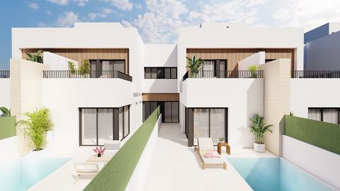 Descripción del objeto: Modernas viillas adosadas que constan de una superficie de unos 168 m² - 187 m² (incluyendo terrazas) con 3 dormitorios, 3 baños (1 en-suite), 1 salón / comedor con cocina moderna, 1 terraza en primera planta (a unos 18 m² - 20 m²) y 1 solario (a unos 37 m² - 44 m²). Las parcelas tienen un tamaño de unos 126 m² - 155 m². Aquí encontrará 12 villas adosadas en Santiago de la Ribera, Costa Cálida. Ubicados en una zona tranquila de este pueblo, estas propiedades están cerca de la playa, de instalaciones deportivas y todos tipos de servicios. Cada propiedad tiene 3 dormitorios y 2 o 3 baños. Diseñadas con un estilo contemporáneo y un concepto de planta abierta, estas amplias viviendas cuentan con una plaza de aparcamiento, terrazas, jardín y piscina privada. Equipamiento adicional: El equipamiento de las villas incluye entre otras cosas pre-instalación de aire acondicionado, ventanas de PVC con doble acristalamiento y persianas motorizados, puertas principales acorazadas, armarios empotrados en los dormitorios, cocinas amuebladas con electrodomésticos, baños con muebles, espejo y mampara, piscina privada en la parcela y parking privado en la parcela. Ubicación de casa/solar: El complejo se encuentra en Santiago de la Ribera a tan sólo unos 1.300 m de la playa y con todos los servicios a pie, tales como bares, restaurantes y supermercados. Puede llegar al campo de golf Roda Golf y al aeropuerto en San Javier en pocos minutos en coche. En el Mar Menor, con sus maravillosas playas, los pequeños pueblos pesqueros y su agua siempre un poco más cálida se halla un paisaje natural con extensas reservas ornitológicas y baños de barro terapéuticos. Además hay durante todo el año una variada oferta de deportes acuáticos. Las ciudades cercanas de Cartagena y Murcia ofrecen una visión de la historia de España y una amplia oferta cultural. Al aeropuerto de Corvera/Murcia se puede llegar en unos 30 minutos en coche y al aeropuerto de Alicante en una hora. Otros: Calificación energética está pendiente.