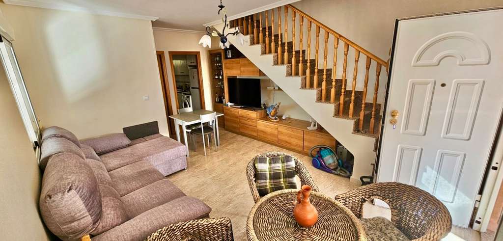Descubre este luminoso dúplex adosado en esquina, situado a tan solo 440 metros de la playa y del paseo marítimo de Santiago de la Ribera. Con orientación sur, disfruta de sol todo el día y vistas despejadas a dos calles tranquilas sin edificios altos, ofreciendo privacidad y confort.
