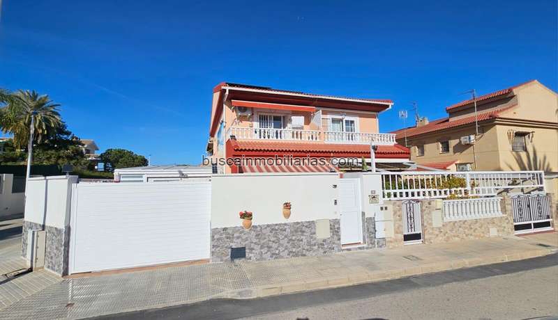 Descubre este encantador chalet dúplex pareado en esquina, bañado de luz todo el año gracias a su privilegiada orientación sur y a sus vistas despejadas a dos calles muy tranquilas. Un hogar cuidado con mimo, recién pintado, sin humedades, con carpintería impecable y un precioso mural artístico en la fachada que lo hace único. Disfruta de un acogedor patio soleado de 20 m2, perfecto para relajarte, aparcar cómodamente o tender la ropa al sol. La vivienda se entrega totalmente amueblada y quipada con electrodomésticos nuevos, lista para entrar a vivir sin preocuparte por nada. Cuenta con energía solar fotovoltaica (9 placas), iluminación LED, aire acondicionado inverter y un completo sistema de seguridad con vídeo portero y cámaras. Además, su garaje cerrado, trastero y patio interior con techo móvil aportan comodidad y espacio extra. A solo 500 metros de la playa y del paseo marítimo, con centro médico en la misma calle y todos los servicios a un paso, esta casa se ubica en la maravillosa Santiago de la Ribera, un lugar ideal para vivir o disfrutar todo el año. Mercadillo semanal a 20 metros, actividades náuticas, carril bici, chiringuitos, restaurantes y excelentes conexiones con Cartagena, Murcia y alrededores. Un hogar luminoso, eficiente y lleno de vida… una oportunidad única para quienes buscan confort, tranquilidad y mar.