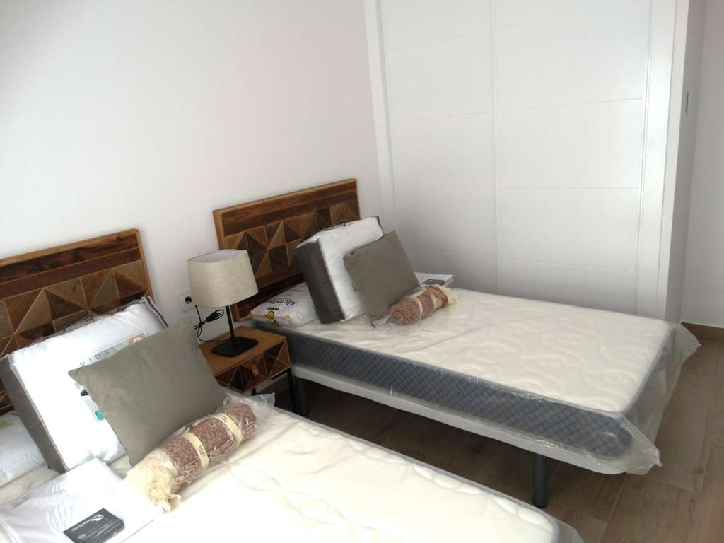 En la primera planta hay dos dormitorios dobles con armarios empotrados y dos baños, uno de ellos en suite con el dormitorio principal. Desde el dormitorio principal se accede a un balcón de unos 11 metros cuadrados, ideal para disfrutar de la brisa de Santiago de la Ribera.