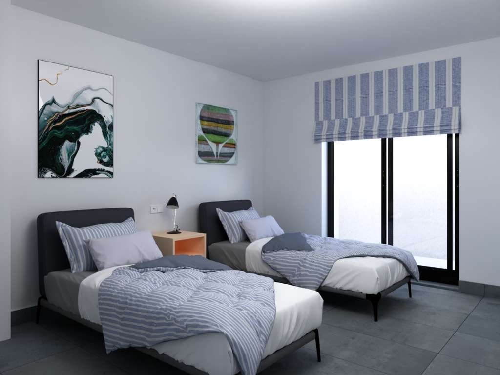 El complejo consta de tres exclusivas villas de una sola planta, cada una con una piscina privada con cascada y un amplio solarium. Con tres amplios dormitorios y dos elegantes cuartos de baño, las propiedades ofrecen una experiencia de vida moderna. Las cocinas, totalmente equipadas con electrodomésticos, hacen que la vida diaria sea agradable y práctica. Además, hay una preinstalación de aire acondicionado, por lo que cada villa está preparada para satisfacer las necesidades de sus futuros residentes.