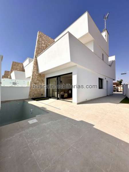 Experience the best of coastal living with this exclusive new development of semi-detached villas, located just 1km from the sandy beaches of San Javier on Spain’s Costa Cálida. Designed for those who appreciate a modern lifestyle close to the sea, these stylish homes combine contemporary design with the comfort of outdoor living. Whether you're seeking a sunny holiday escape or a permanent residence, this is a rare opportunity to enjoy life by the Mediterranean. Each semi-detached villa is distributed over two floors plus a spacious rooftop solarium. The ground floor features an open-plan living area with large windows that flood the space with natural light. The kitchen and dining areas are perfect for entertaining or everyday family life. Also on this level is a comfortable double bedroom and a full bathroom, ideal for guests or flexible living arrangements. Upstairs, there are two additional bedrooms and a second bathroom. One of the bedrooms opens onto a private terrace, offering a quiet spot to enjoy your morning coffee or evening breeze. Outdoor spaces are central to the design. The rooftop solarium offers open views and a private setting for sunbathing, dining, or simply relaxing. Each villa also includes a private garden area with a refreshing pool—ideal for cooling off on hot summer days—as well as on-site parking for added convenience. This setup is perfect for enjoying the Spanish lifestyle all year round. San Javier is a vibrant coastal town with everything you need for day-to-day living. From supermarkets and shops to cafés, bars, and restaurants, the area stays active throughout the year. The nearby Dos Mares shopping center adds even more variety. The Mar Menor beaches are known for their calm waters and traditional chiringuitos (beach bars), while the region also offers plenty of options for sailing, cycling, and golf. Excellent road connections make it easy to explore the wider region. The motorway network provides quick access to Murcia, Cartagena, and Alicante, making both travel and commuting simple. These semi-detached villas are delivered with high-quality finishes, including fitted wardrobes, white goods, LED lighting, pre-installed air conditioning, and a private pool. Every detail is designed with comfort and practicality in mind. Don’t miss this chance to own a modern semi-detached villa near the sea in San Javier. Contact us today to schedule your private viewing!