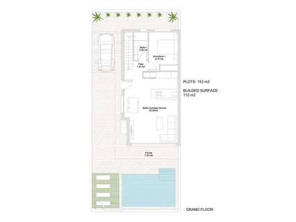 En la planta baja hay un luminoso salón con cocina americana y acceso a la terraza, un dormitorio doble con armario empotrado y un baño.En la primera planta hay 2 amplios dormitorios, uno con armario empotrado y el otro con vestidor y baño en suite. Jardín privado con la piscina y plaza de aparcamiento.